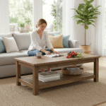 Anchor your living room with the rustic charm of the Wervona Farmhouse Coffee Table. This large wooden table serves as the perfect centerpiece, blending functionality with a warm, inviting aesthetic. Its sturdy build and timeless design make it an essential piece for family gatherings and quiet evenings alike.